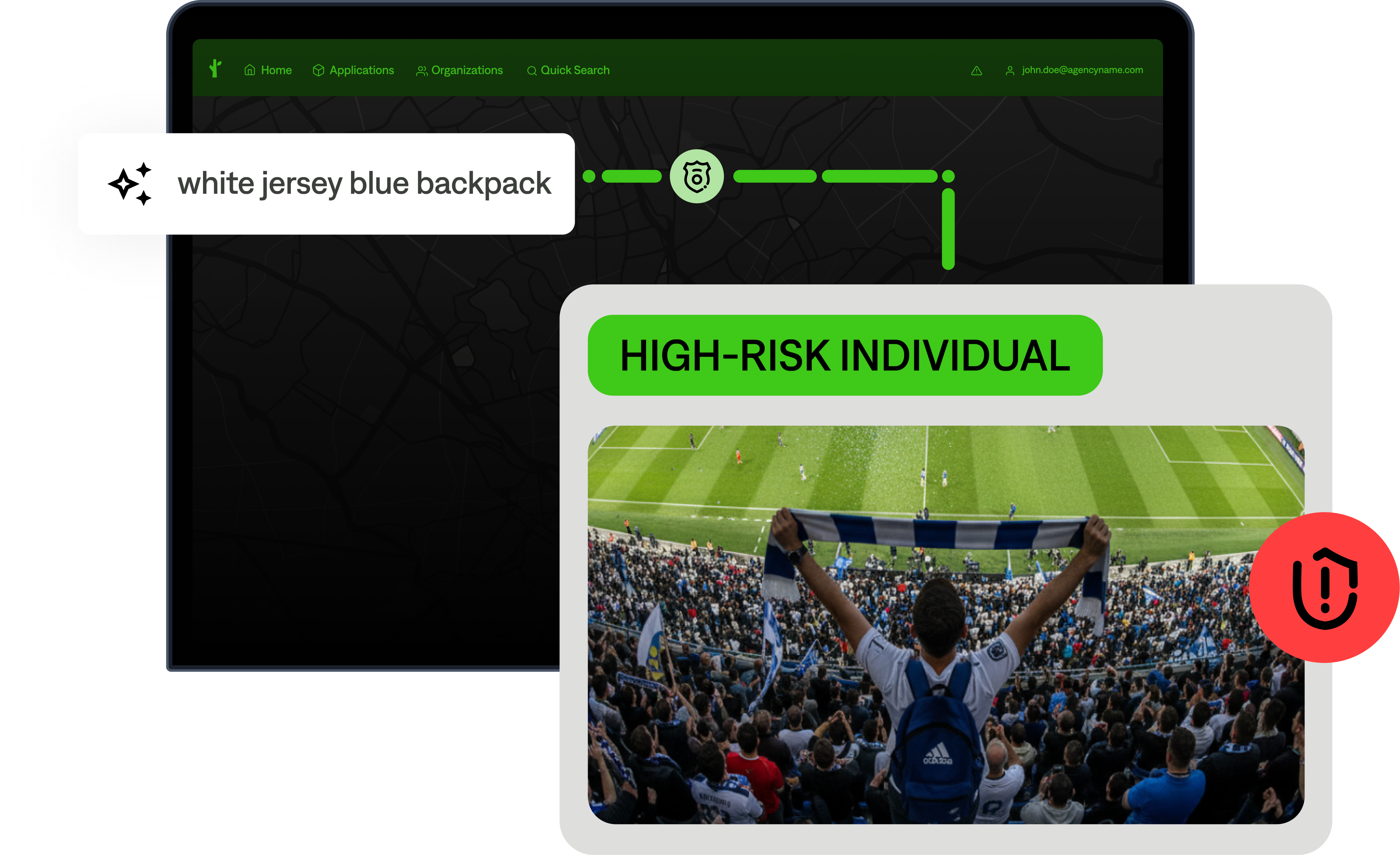 With Flock’s FreeForm search and alerting features, a phrase or description can be searched across video, such as “white jersey with a blue backpack,” enabling you to escalate a social media tip about a person into an operational alert far faster.* Meanwhile, FlockOS alerts enable instant cross-department communication.