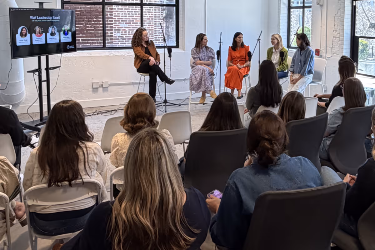The event featured Meg Heusel, VP of Go-To-Market; Paige Todd, Chief People Officer; Rakhi Voria, VP of Commercial Sales; and Christina Engebretson, SVP of Operations. The discussion was moderated by Caity Peak, a member of the Women of Flock board.