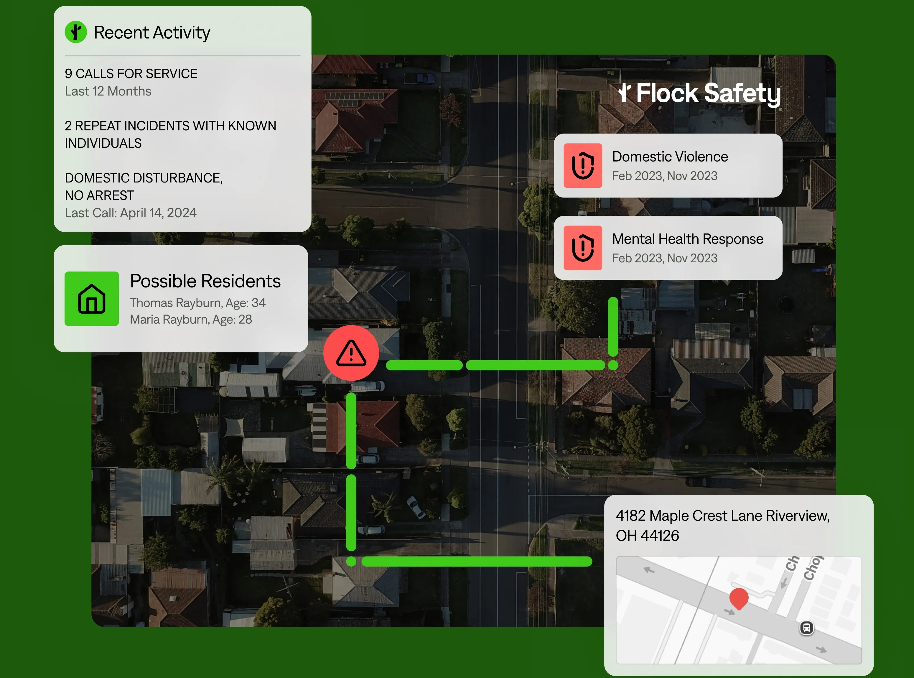 - Officers arrive on scene with full context, including prior incidents and known individuals.